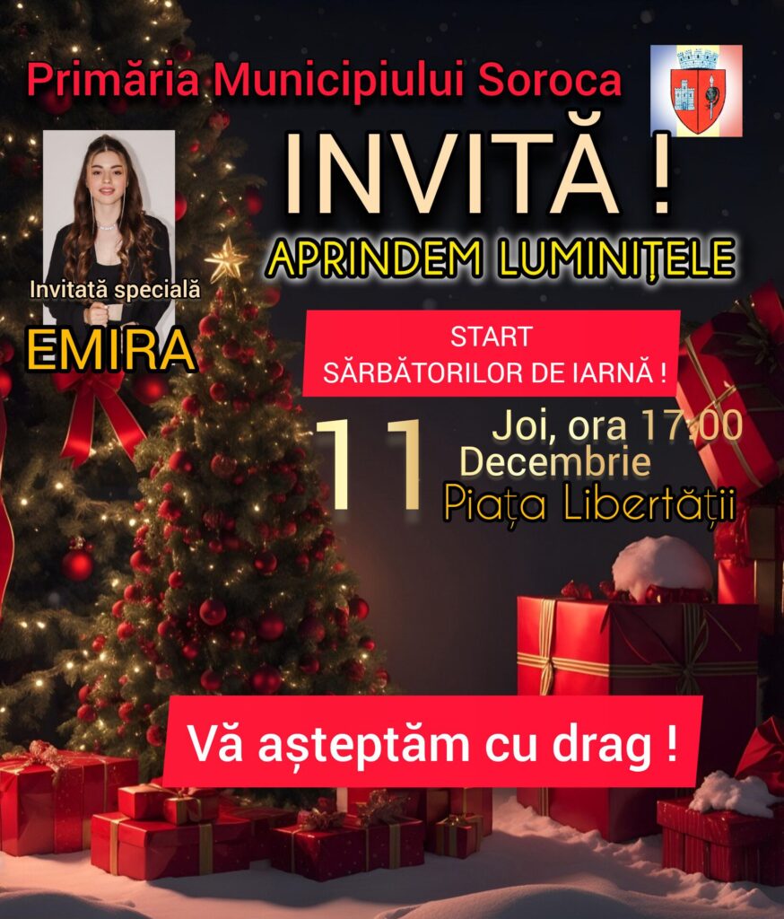 Primăria municipiului Soroca invită toți locuitorii și oaspeții orașului la evenimentul festiv de aprindere a luminilor de Crăciun. Ceremonia va avea loc joi, 11 decembrie, începând cu ora 17:00, în Piața Libertății.