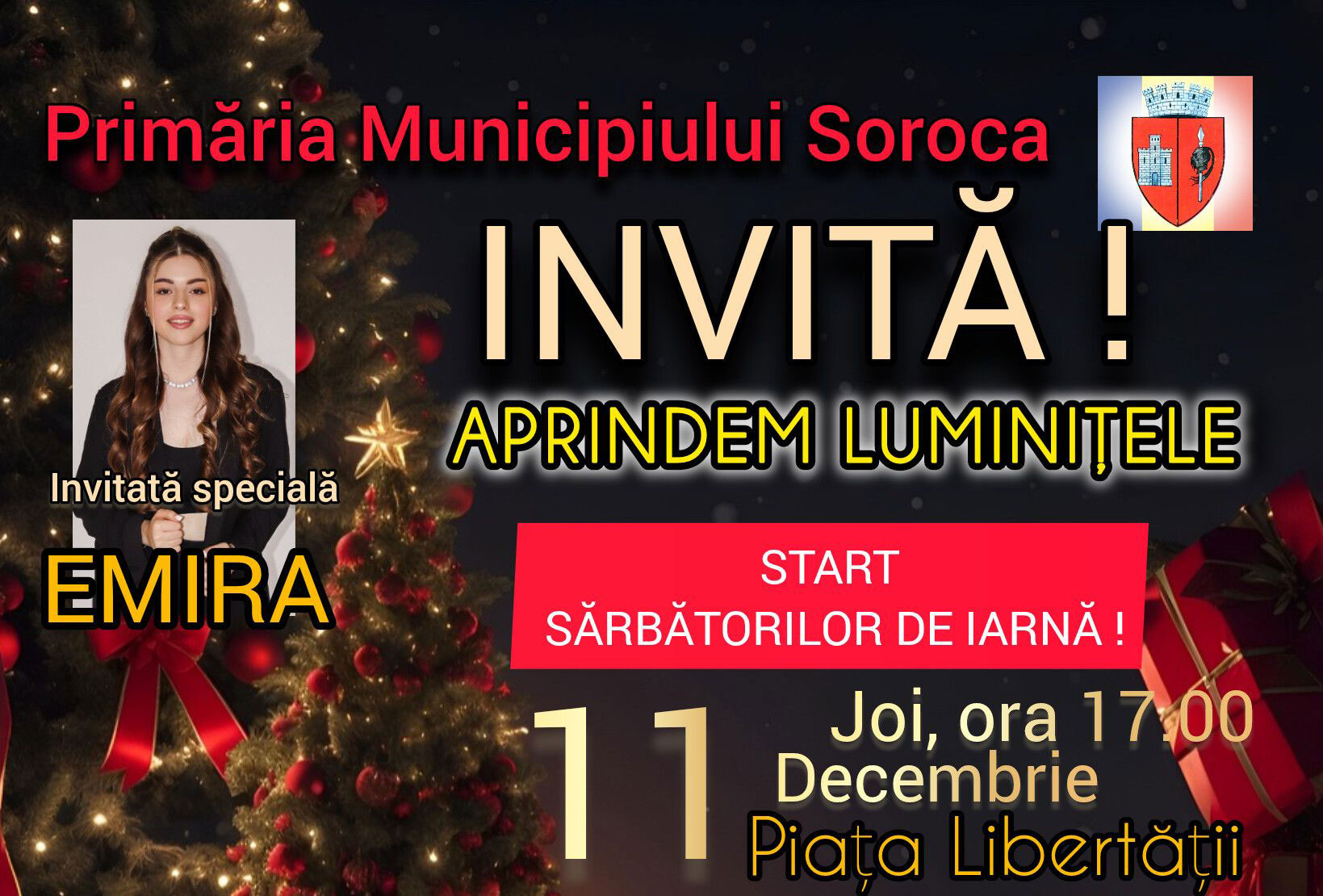 Primăria municipiului Soroca invită toți locuitorii și oaspeții orașului la evenimentul festiv de aprindere a luminilor de Crăciun. Ceremonia va avea loc joi, 11 decembrie, începând cu ora 17:00, în Piața Libertății.