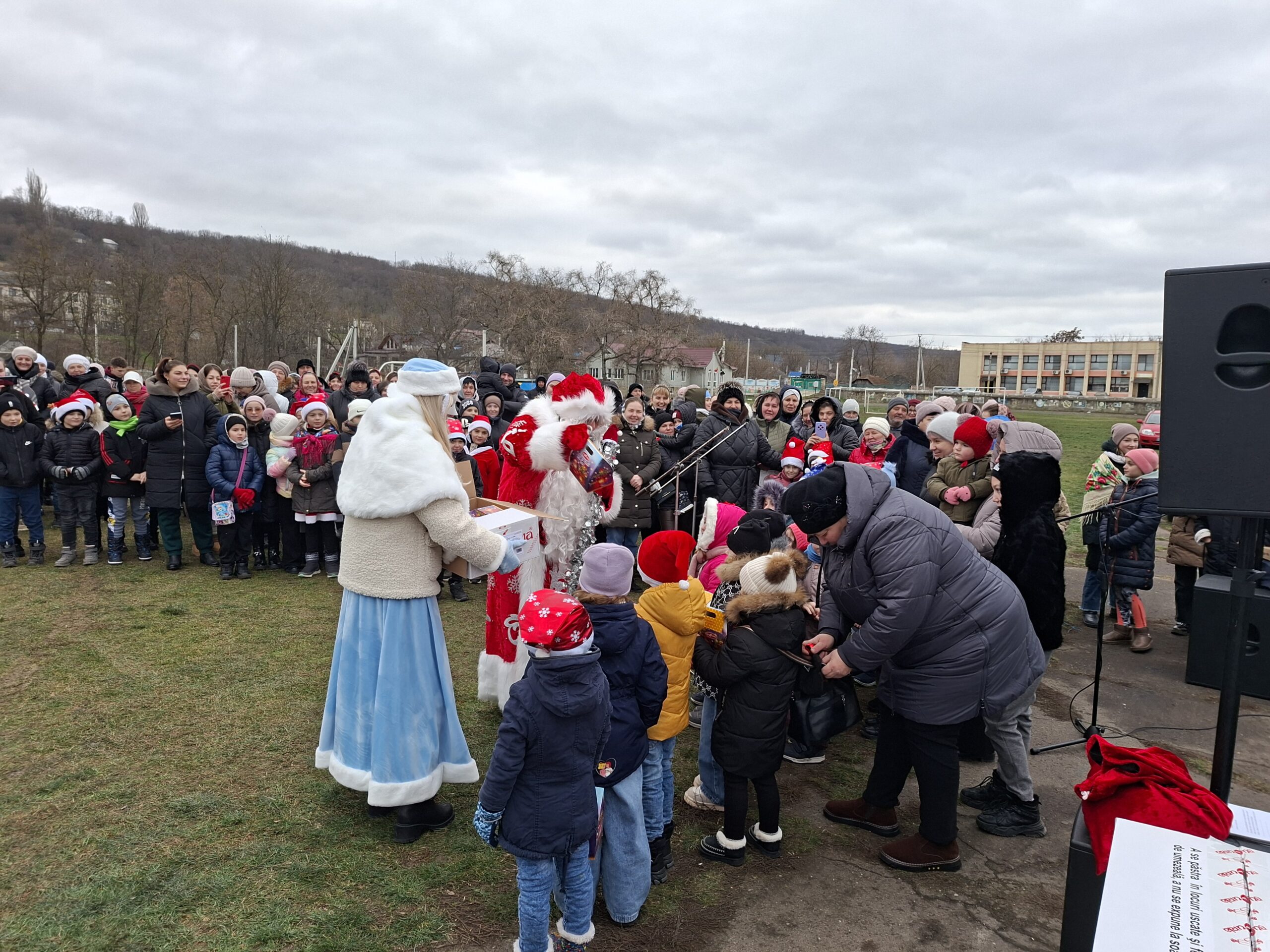 Evenimentul a avut loc cu sprijinul administrației locale, nemijlocit, a primarului comunei Cosăuți, Andrei Prodan, cel care nu s-a ferit să-l ajute pe Moș Crăciun în frumoasa sa misiune de a împărți daruri. Celor mici, dar și celor mai vârstnici. Dacă picii s-au bucurat de dulciuri, maturii au gustat din bucatele gătite la bucătăria improvizată chiar pe stadion: nu a lipsit mămăliga, fripturica, zeama de pește și vinul fiert.