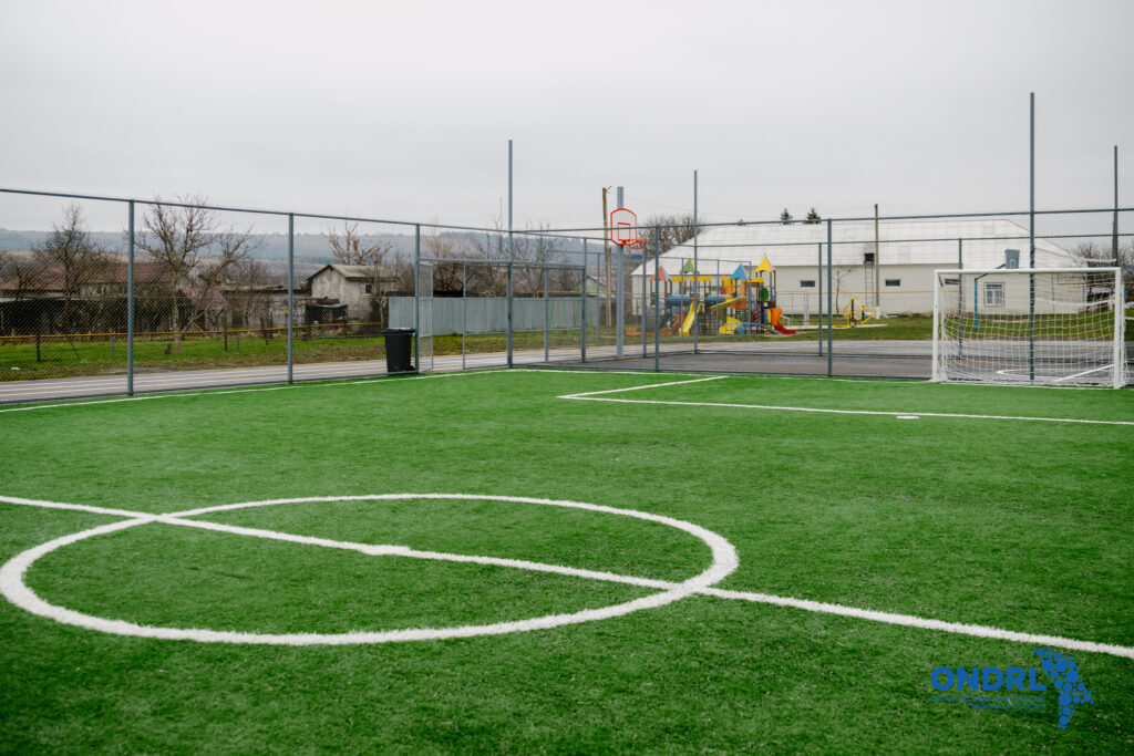 Renovarea terenului a devenit posibilă doar prin aplicarea la Programul Național „Satul European”, ediția a II-a. Lucrările, desfășurate în perioada aprilie–decembrie 2025, au constat în construirea unui complex sportiv modern, care include terenuri pentru baschet, volei, fotbal și tenis de câmp, precum și o pistă atletică cu patru benzi.